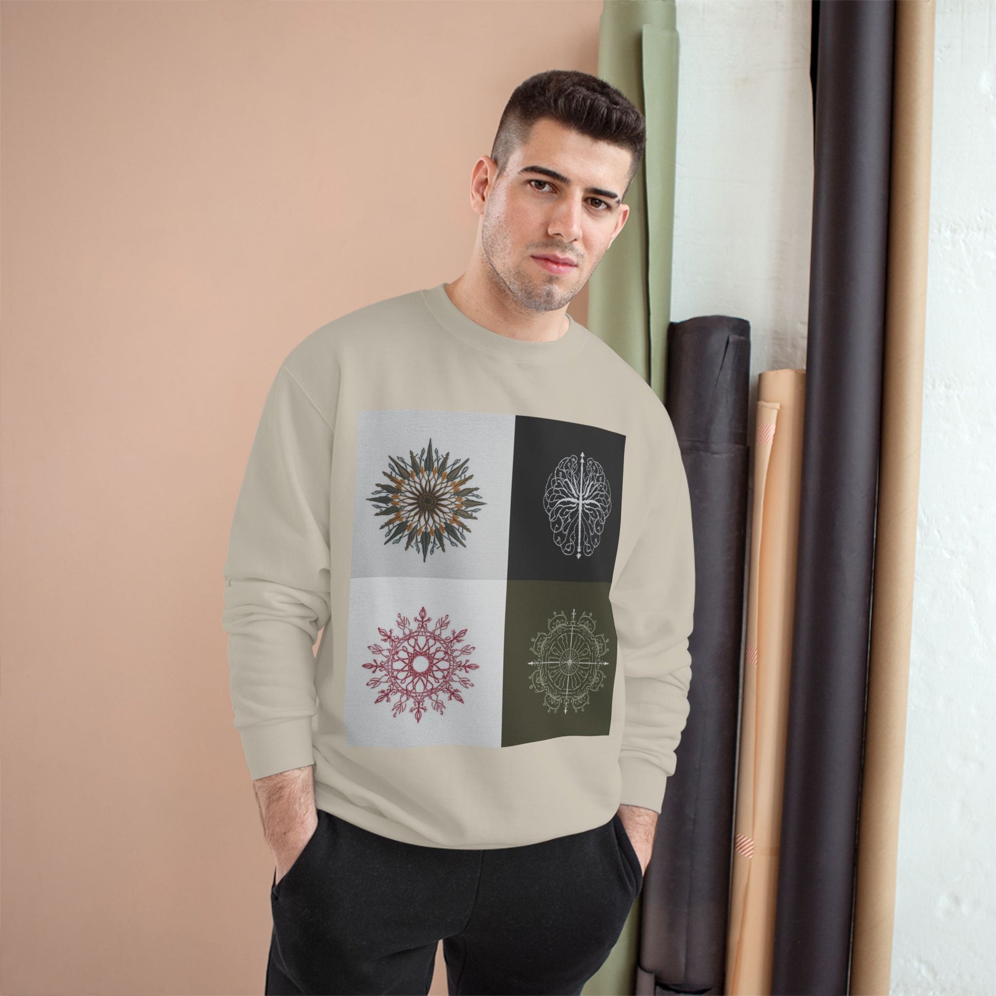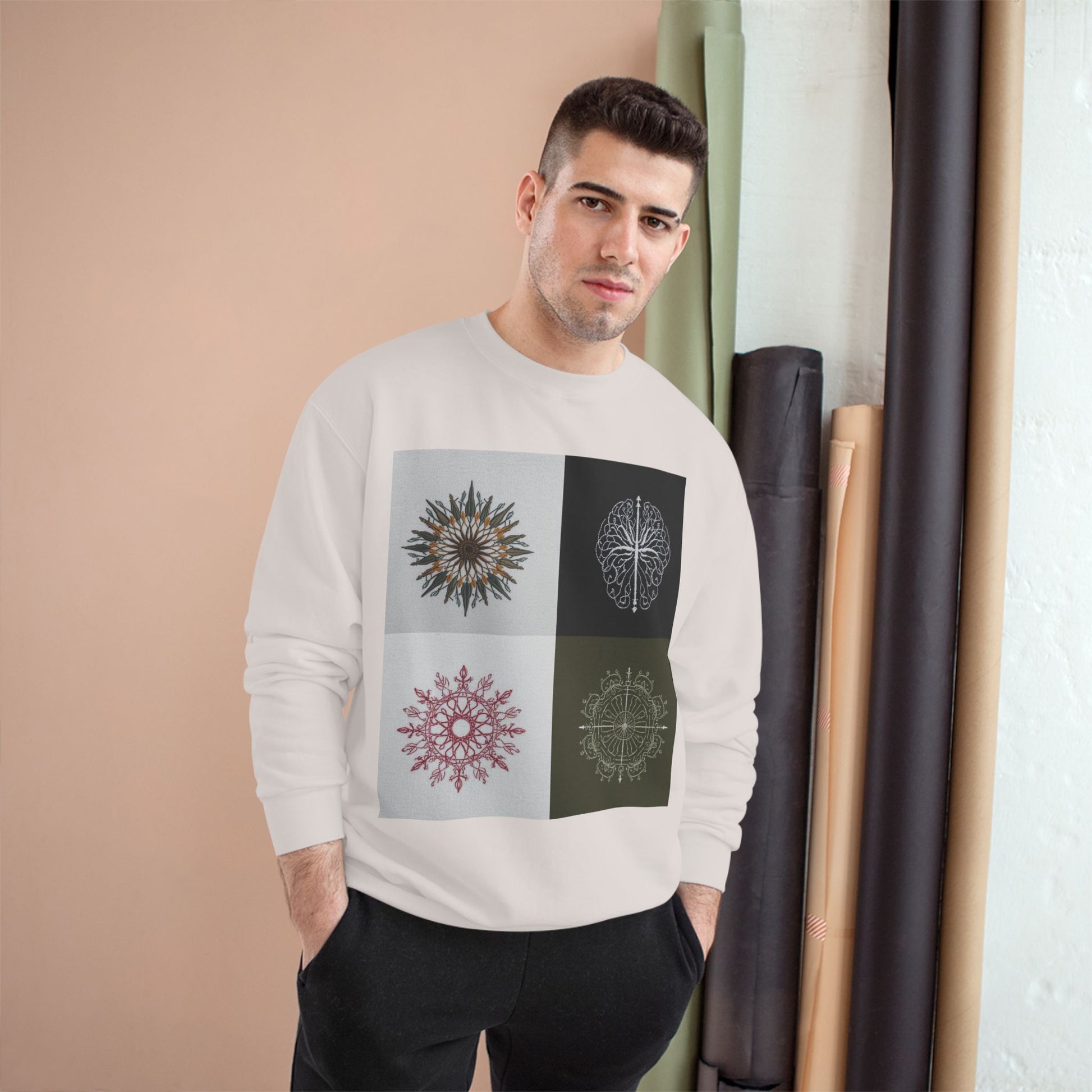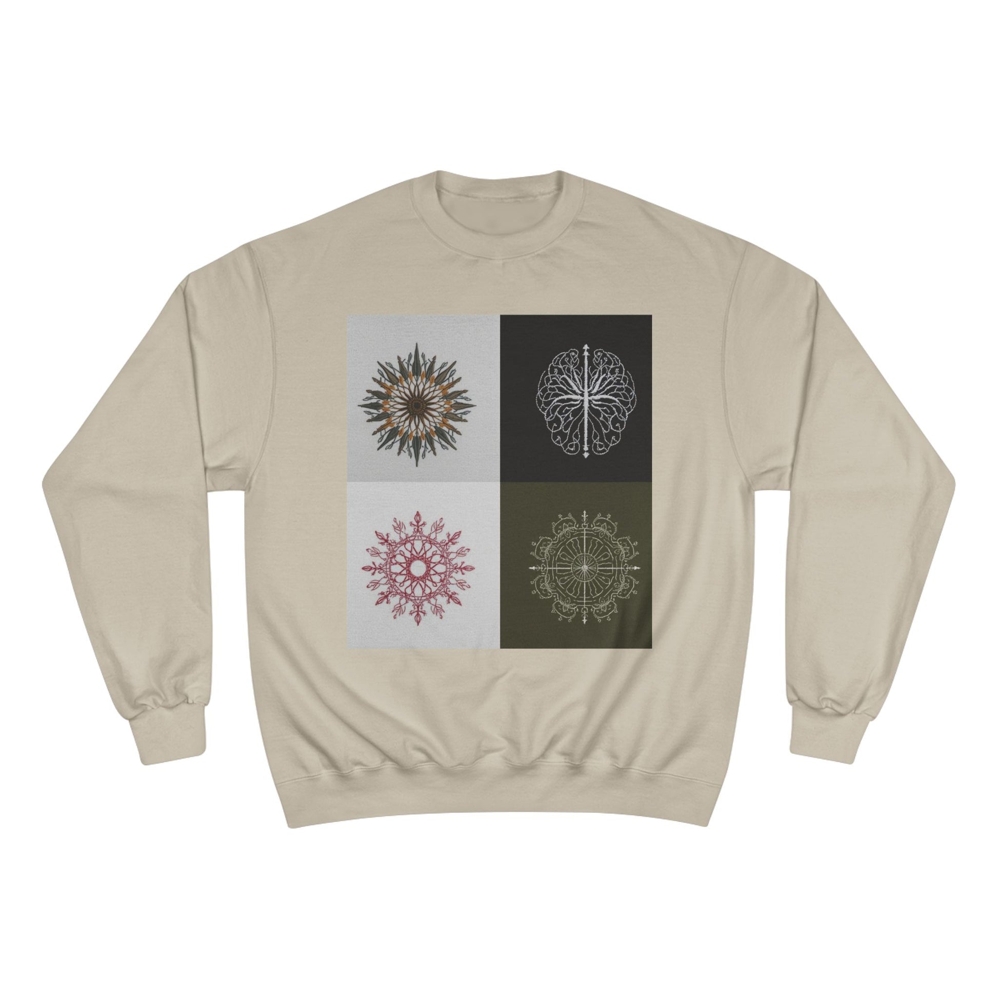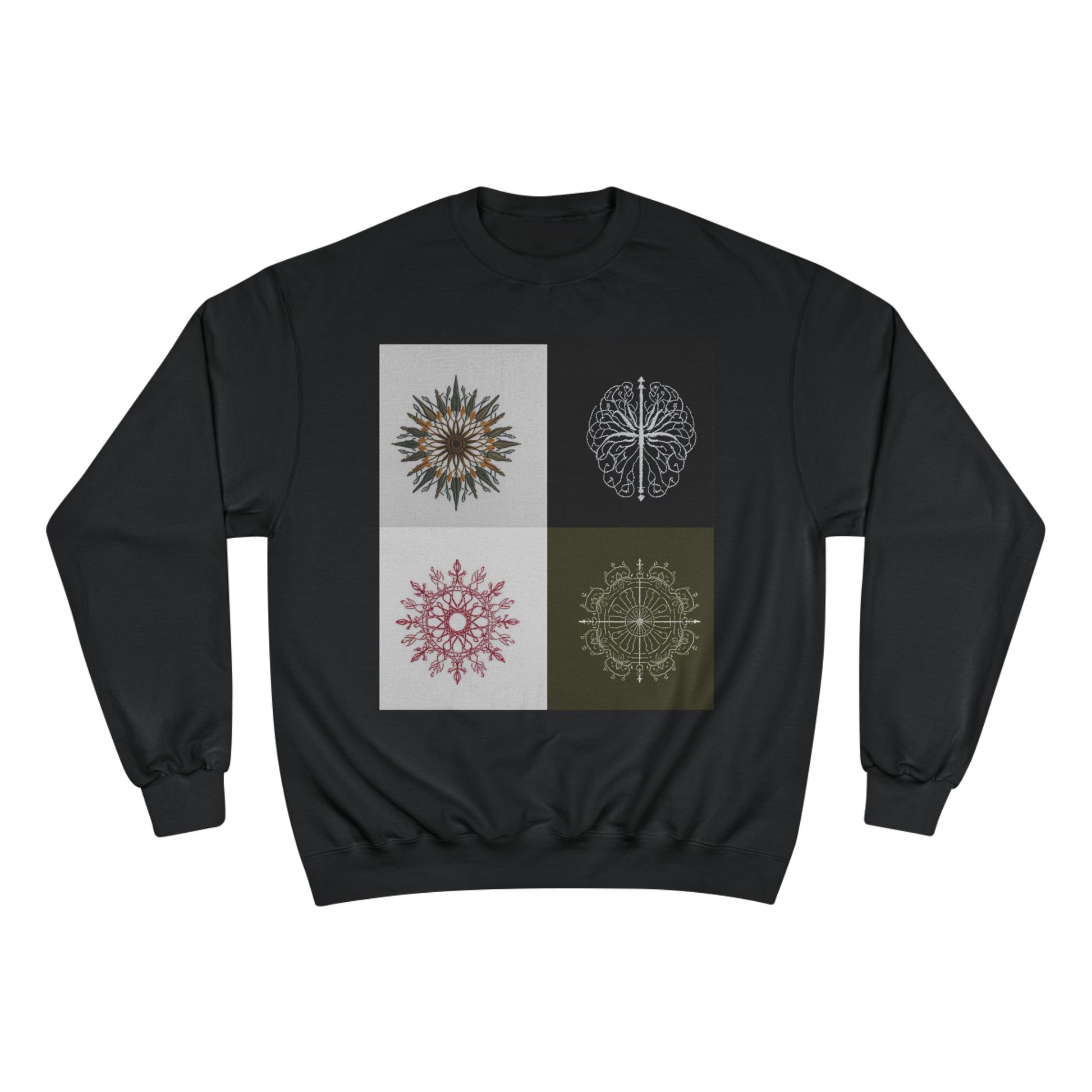Mandala Grid Champion Sweatshirt – Boho Floral Sunburst Crewneck